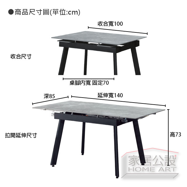 寬 140 × 深 85 × 高 73桌腳內寬:70cm(固定)