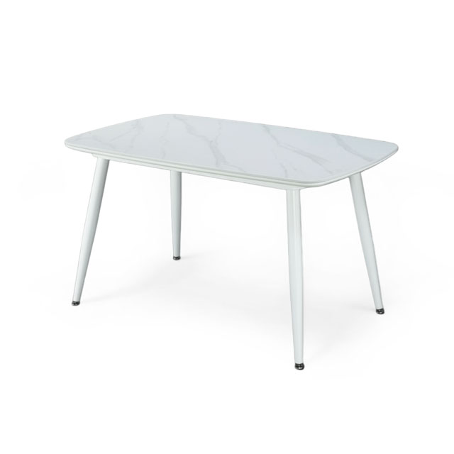 岩板特性抗刮耐熱,可以直接放熱湯鍋、刀叉餐具不怕留下痕跡。3️⃣ 白色鐵腳穩固不搖晃